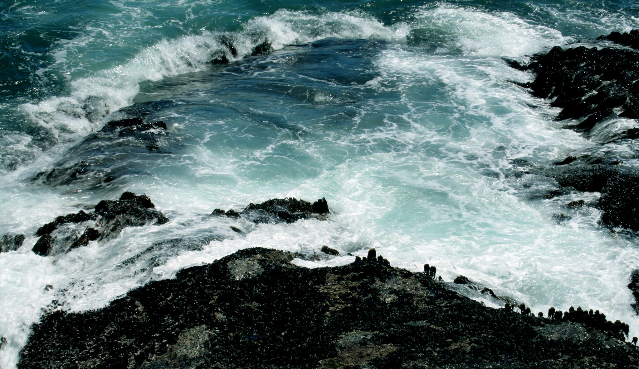 Fathoms below the current and crashing waves,